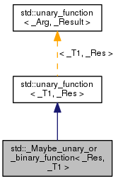 Inheritance diagram for std::_Maybe_unary_or_binary_function< _Res, _T1 >: